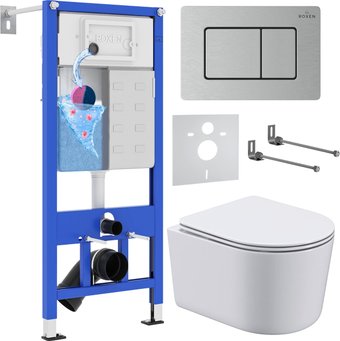 Описание ✅ Комплект инсталляции 6 в 1 Roxen StounFix Dual Fresh 968486 включает удлиненные крепления, шумоизоляционную плиту, аромадозатор, металлическую кнопку смыва Roxen Steel 420280S и подвесной унитаз Roxen Simple Compact 530120-01 Rimless Soft Close. | |