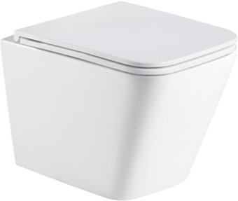 подвесной, конструкция: без бачка, задний подвод воды, горизонтальный выпуск, с сиденьем, безободковый
