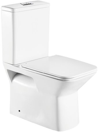 напольный, конструкция: компакт, нижний подвод воды, горизонтальный выпуск, двухрежимный слив, с сиденьем, безободковый