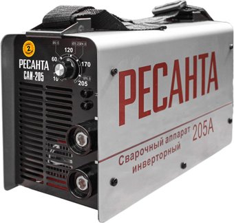 ручная дуговая сварка (MMA), входное напряжение 220 В, сварочный ток: 10-205 А, диаметр электрода: 1.6–5 мм, 3.1 кг