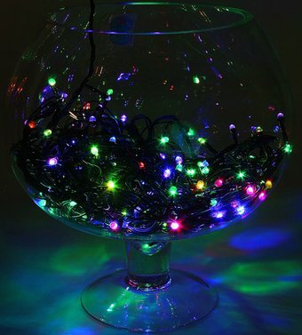 светодиодная гирлянда, для использования в помещении, длина 9 м, 100 ламп, питание от сети, свечение мерцающее, провод черный ПВХ