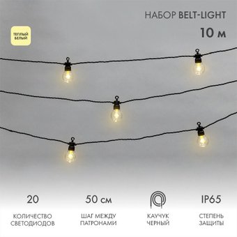 гирлянда, для использования на улице, длина 10 м, 20 ламп, свечение постоянное, IP65, 4.8 Вт, провод черный каучук