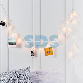 Описание Светодиодная гирлянда «Прищепки» — эффектный декор интерьера, который поможет разнообразить обстановку и создаст атмосферу уюта. На проводе длиной 5,2 метра располагаются 30 диодов, излучающих белый свет теплого оттенка. Каждый элемент имеет пластиковую прищепку, к которой можно прикрепить фото, картинку или другие легкие элементы декора. Гирлянда IP20 подходит для оформления новогодних елей, оконного текстиля, мебели и предполагает использование в помещениях с естественной влажностью воздуха. Изделие работает от сети 230 В, для подключения в розетку предусмотрен питающий шнур длиной 3 метра. | |